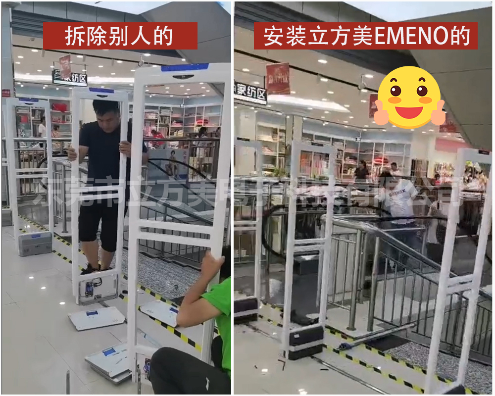 以下是我司客戶的真實(shí)案例!超市開業(yè)后啟動(dòng)防盜裝置,但由于電梯對于防盜設(shè)備的干擾性很強(qiáng),而安裝的防盜器抗干擾性能太差,所以設(shè)備安裝在電梯旁,完全不工作!最后客戶只能把已經(jīng)安裝好的防盜器全部拆掉,重新安裝上立方美emeno的設(shè)備!環(huán)境中能對防盜器造成干擾的因素實(shí)在太多了,不僅是電梯,還有各種電器、電源開關(guān)、電線等都會(huì)對防盜器造成一定的干擾,所以選對抗干擾性能強(qiáng)的防盜器,至關(guān)重要!