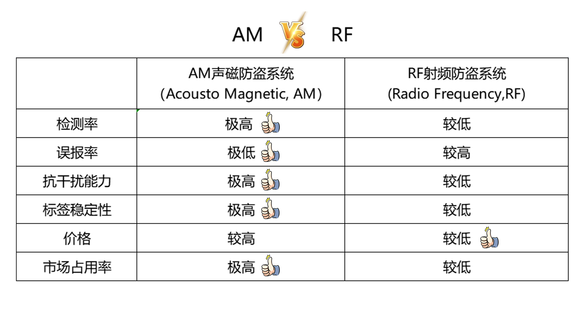 AM聲磁防盜系統(tǒng)和RF射頻防盜系統(tǒng)的區(qū)別主要有工作原理、工作性能和價(jià)格等,具體區(qū)別如下: