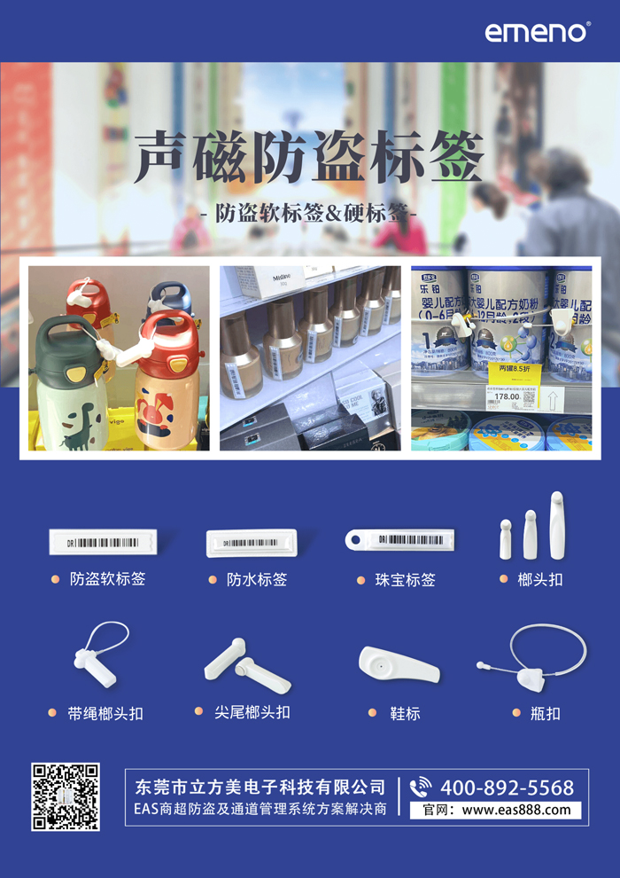 立方美emeno擁有品類齊全的防盜標(biāo)簽產(chǎn)品,如防盜軟標(biāo)簽、防水標(biāo)簽、珠寶防盜標(biāo)簽、小榔頭、中榔頭、大榔頭、帶繩榔頭扣、鞋標(biāo)、酒瓶扣、奶粉扣、蜘蛛標(biāo)簽、墨水標(biāo)簽、眼鏡標(biāo)簽、異形標(biāo)簽等等。所有的防盜標(biāo)簽質(zhì)量可靠,可根據(jù)店鋪的實(shí)際情況提供專業(yè)的防盜標(biāo)簽選用方案。如果您有任何關(guān)于防盜標(biāo)簽的需求,歡迎聯(lián)系:18925223556。